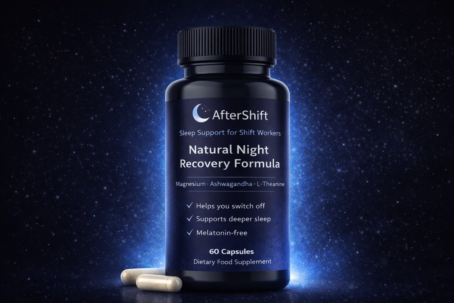AfterShift is designed to help you relax, switch off, and fall asleep faster- without melatonin